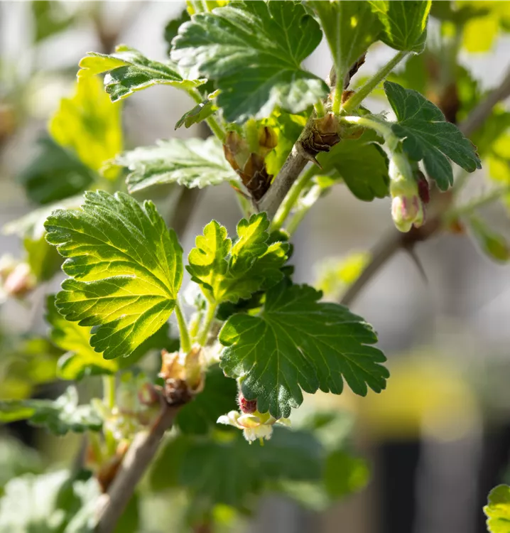 Die Triebe von Ribes uva-crispa 'Redeva'(s) sind bestachelt.