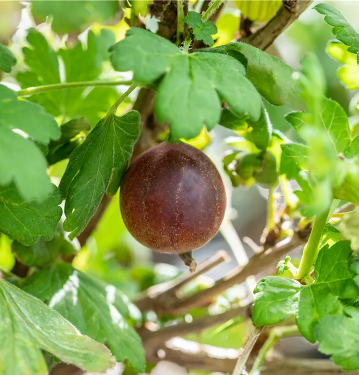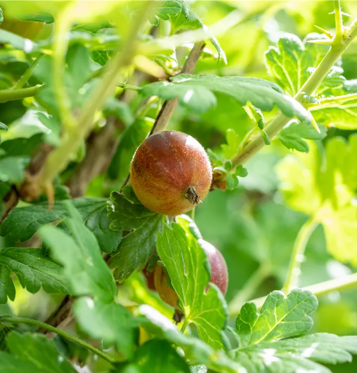 Die Stachelbeere 'Redeva'(s) (Ribes uva-crispa) bildet purpurrote, mittelgroße Beeren. Süß im Geschmack, besitzt die Stachelbeere 'Redeva'(s) eine behaarte Schale. Für eine ertragreiche Ernte ab Juli schaffen durchlässiger, lockerer, nährstoffreicher Boden und ein sonniger bis halbschattiger Standort optimale Bedingungen. Ihre weißen Blüten sind eine schöne Erscheinung.