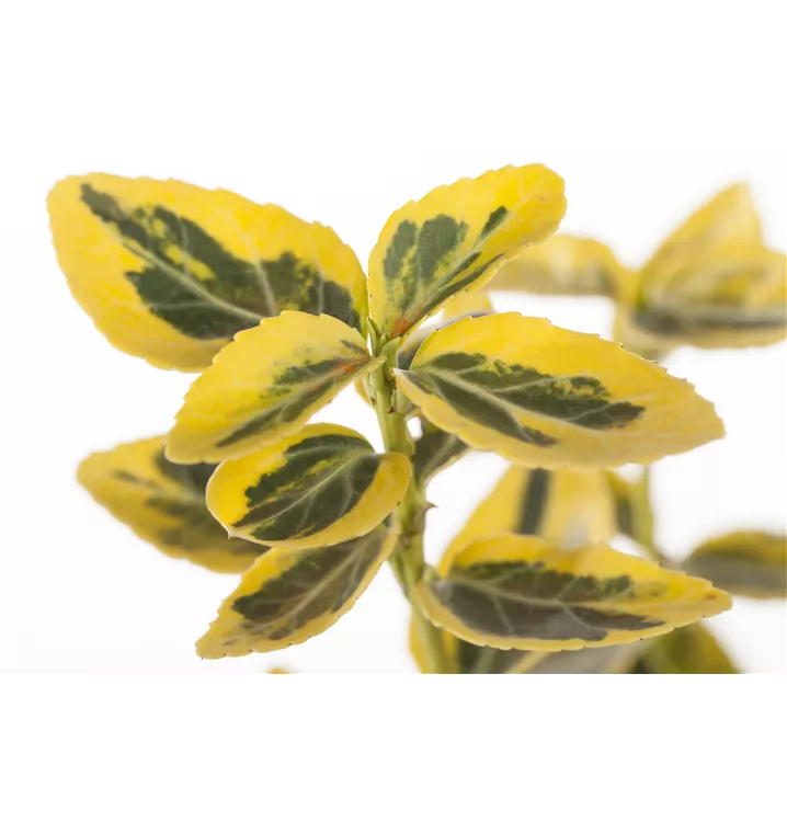 Die Goldbunte Kriechspindel 'Emerald´n Gold' (Euonymus fortunei) ist ein buschiger, breiter, dichter Zwergstrauch mit dekorativen Früchten. Zudem trägt die Goldbunte Kriechspindel 'Emerald´n Gold' dekorative, immergrüne, eiförmige, grüne Blätter mit einem gelben Rand.