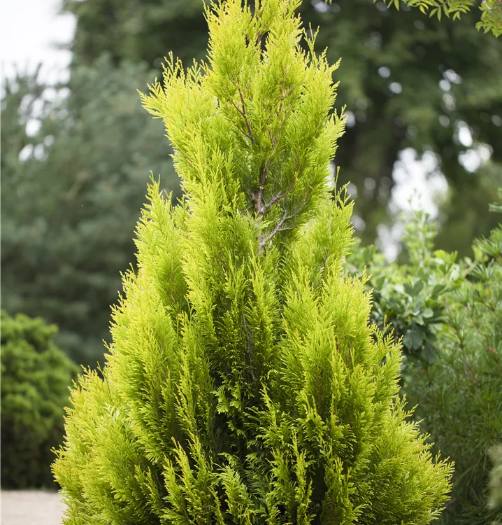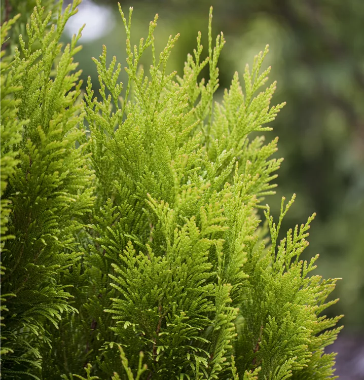 Thuja plicata '4ever' GOLDY®(s) wächst aufrecht, pyramidal, schlank und erreicht gewöhnlich eine Höhe von 2,5 - 3 m und wird bis zu 1 - 1,2 m breit.