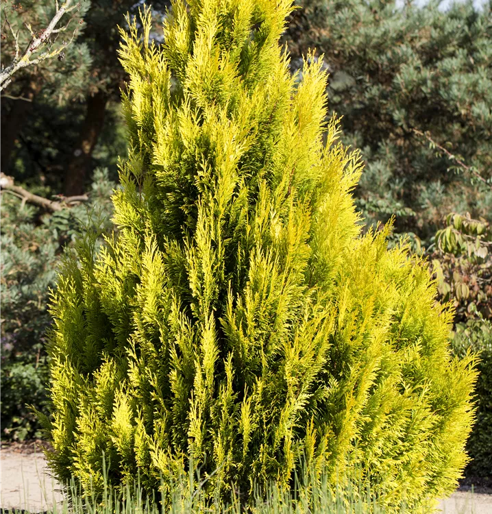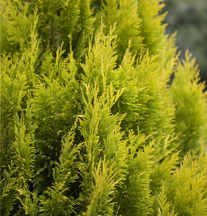 Der Große Lebensbaum '4ever' GOLDY®(s) (Thuja plicata) wächst aufrecht, pyramidal, schlank und erreicht gewöhnlich im Alter eine Höhe von ca. 3 m und eine Breite von ca. 1,2 m. Seine Nadeln haben eine schöne goldgelbe Färbung. Dieses Nadelgehölz ist gut frostverträglich. Er bevorzugt durchlässigen, nährstoffreichen, sauren Boden in sonniger bis halbschattiger Lage.