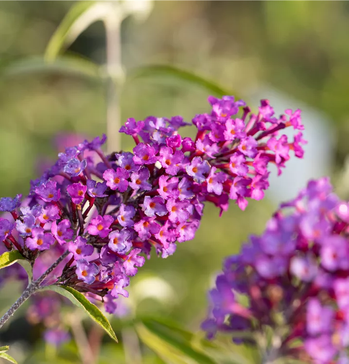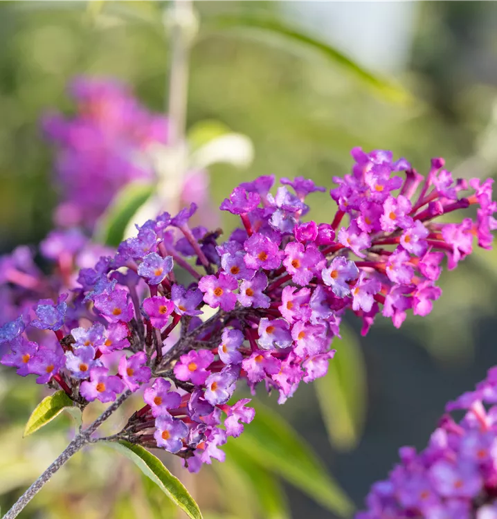 Die purpurroten Blüten des Sommerflieder 'Nanho Purple' erscheinen in Rispen von Juli bis September. Diese werden etwa 12 - 15 cm groß und sind stark duftend.
