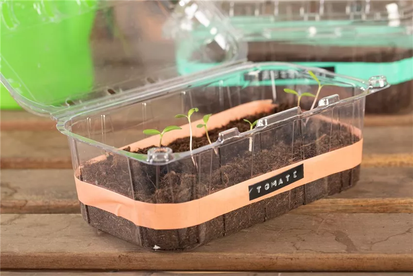 Mini- Gewächshaus Weintrauben sind oft in einer Plastikschale verpackt. Wofür die gut sein soll, weiß man irgendwie nicht so genau, aber jetzt bekommt sie eine Aufgabe. Damit aus der Weintraubenschale ein Mini-Gewächshaus wird, wird die Schale ungefähr zu Hälfte mit Anzuchterde gefüllt. Anschließend werden die Samen eingesetzt und die Weintraubenschale gut gegossen. Die Erde sollte dabei feucht, aber nicht klitschnass sein. Anschließend wird der Deckel der Weintraubenschale geschlossen und das Mini-Gewächshaus auf eine sonnige Fensterbank gestellt. Falls im unteren Teil der Weintraubenschale Abtropflöcher vorhanden sind, kann das Mini-Gewächshaus auf einen Teller oder in eine Schale gestellt werden, damit es beim Gießen nicht für eine Überflutung sorgt. Ein Klebeband rund um die Schale kann beschriftet werden, damit man den Überblick behält, was wo wächst.