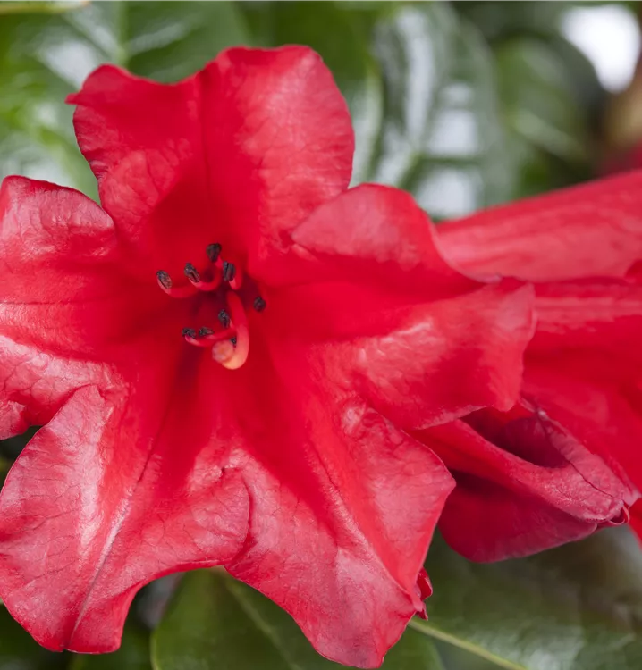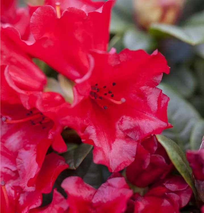 Der Zwergrhododendron 'Scarlet Wonder' (Rhododendron repens) bringt von Anfang Mai bis Ende Mai ein wahres Meer aus roten Blüten hervor. Dieses flach, kompakt wachsende Gehölz erreicht gewöhnlich eine Höhe von 40 - 60 cm und eine Breite von 0,8 bis 1,3 m. Ein halbschattiger (bis schattiger) Standort und ein kalkfreier Boden schaffen optimale Bedingungen für ein gesundes Wachstum. Der Zwergrhododendron 'Scarlet Wonder' ist gut frostverträglich.
