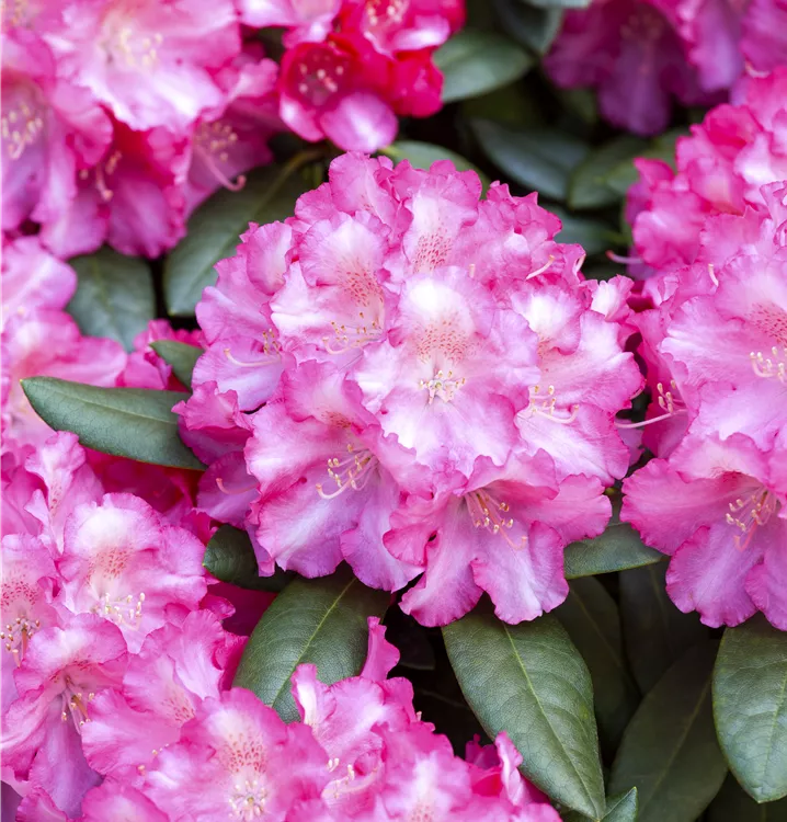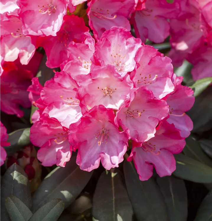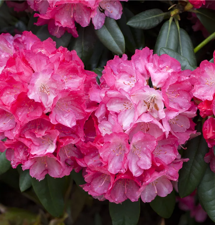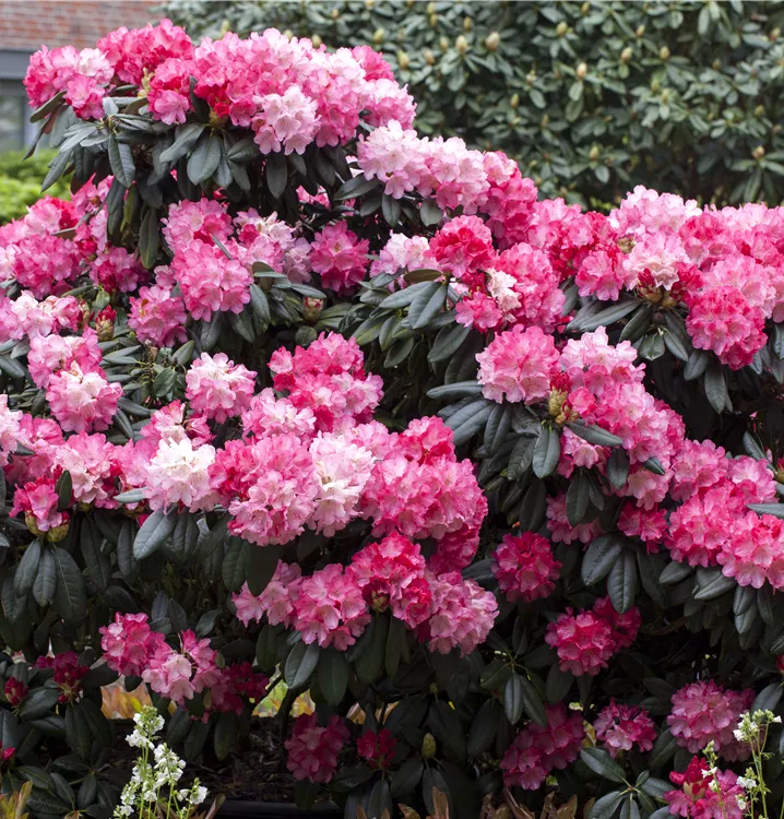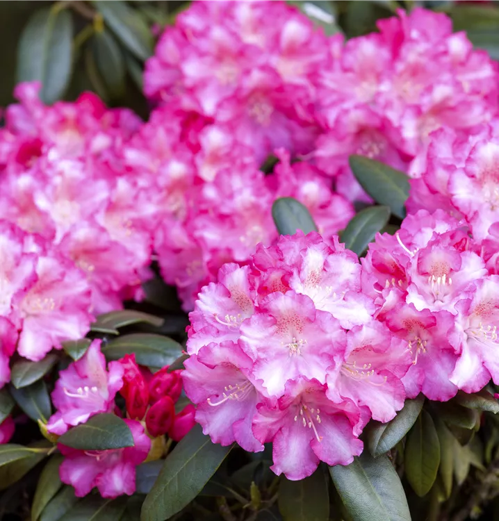 Der Yaku-Rhododendron 'Fantastica' (Rhododendron yakushimanum) bringt von Mitte Mai bis Anfang Juni ein wahres Meer aus rot-weißen Blüten hervor. Dieses dicht, kompakt wachsende Gehölz erreicht gewöhnlich eine Höhe von 1 - 1,5 m und eine Breite von 1,5 bis 2 m. Ein halbschattiger (bis schattiger) Standort und ein humoser, kalkfreier Boden schaffen optimale Bedingungen für ein gesundes Wachstum. Der Yaku-Rhododendron 'Fantastica' ist gut frostverträglich.