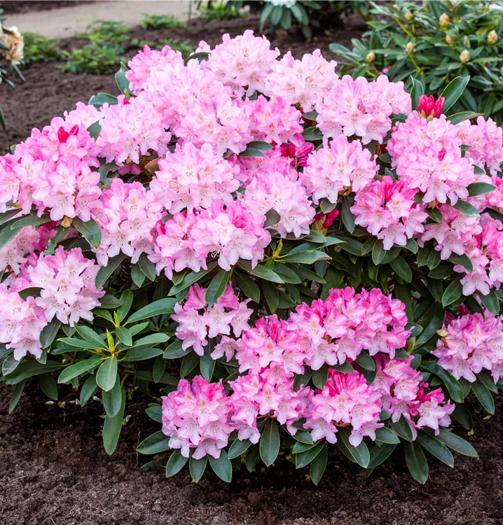 Rhododendron yakushimanum 'Pink Cherub' ist ein Flachwurzler.