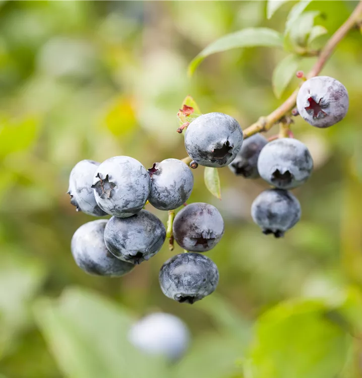 Die Heidelbeere 'Hortblue Petite'® (Vaccinium corymbosum) bildet blaue, große Beeren. Diese sind süß-säuerlich im Geschmack. Für eine ertragreiche Ernte ab Juni schaffen humoser, sandiger, schwachsaurer Boden und ein sonniger bis halbschattiger Standort optimale Bedingungen. Ihre hellrosafarbenen Blüten sind eine schöne Erscheinung. Die Heidelbeere 'Hortblue Petite'® wird mit ihrem buschigen und breiten Wuchs etwa 2 m hoch und 2 m breit, dadurch kann sie hervorragend in Töpfen auf Balkon oder Terrasse angebaut werden.