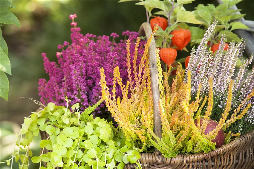 Calluna vulgaris Der Herbst bringt so viele schöne Naturmaterialien mit sich, mit denen es sich perfekt dekorieren lässt. Von Hagebutten über Heide bis hin zu den Früchten der Lampionblume – der Kreativität sind im Herbst keine Grenzen gesetzt.